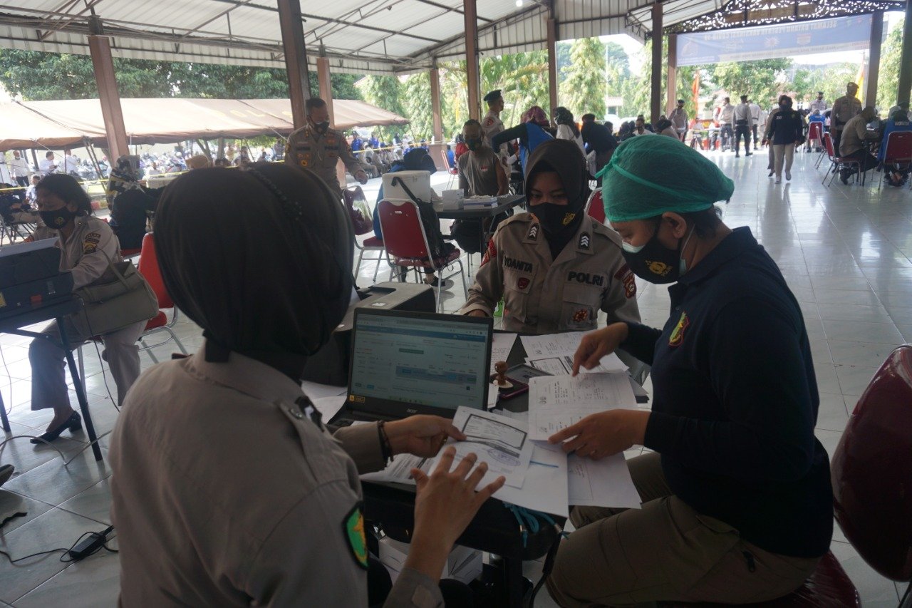 “Ini salah satu bentuk kita mengsukseskan program pemerintah. Hari ini kita melaksanakan vaksin sebanyak 170 personil. Untuk staf sat gegana 40 personil, gegana 50 personil dan batalion A sebanyak 80 personil,” papar Dansat Brimob Polda Sumsel Kombes Pol Yudo Nugroho Sugianto.