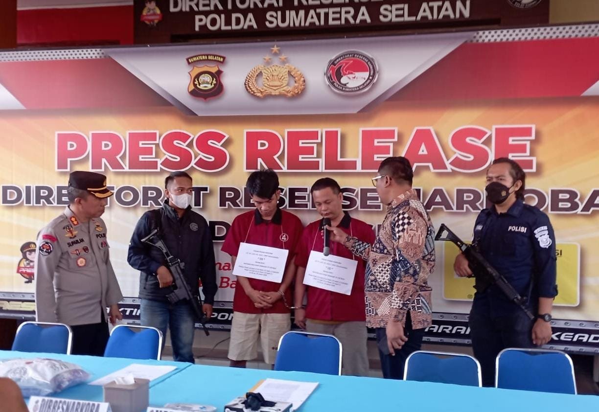 MATTANEWS.CO, PALEMBANG –Ditresnarkoba Polda Sumsel menggagalkan pengiriman 19 ribu lebih pil ekstasi asal Pekanbaru menuju Palembang. Selain pil ekstasi, petugas juga meringkus Rengki Susanto alias Frengki (28), warga Jalan Naskah, Kelurahan Sukarami, Kecamatan Sukarami, Palembang dan Febriansyah alias Iis (33), warga Jalan Lubuk Kawah, Lorong Melati, Kelurahan Kebun Bunga, Kecamatan Sukarami, Palembang, Jumat (22/09/2023).