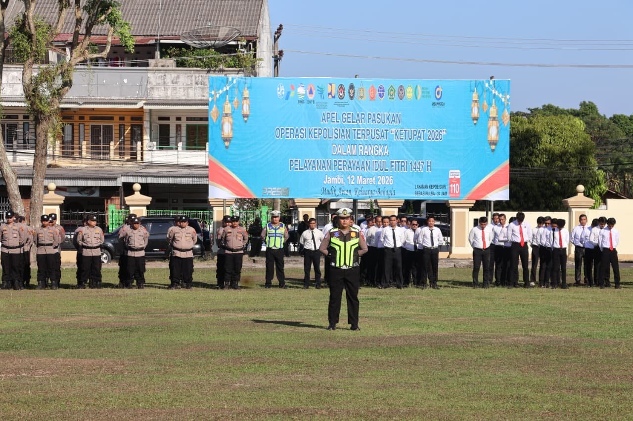 Dalam amanatnya, Kapolresta Jambi menyampaikan bahwa Operasi Ketupat 2026 akan berlangsung selama 13 hari, mulai 13 hingga 25 Maret 2026, dan dilaksanakan secara serentak di seluruh wilayah Indonesia.