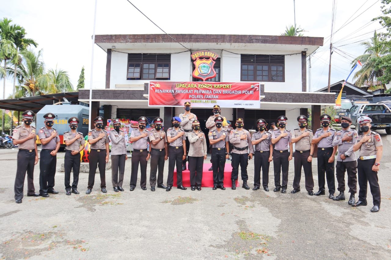 Upacara Korps Raport Kenaikan Pangkat dipimpin langsung oleh Kapolres AKBP Ongky Isgunawan SIK selaku Ispektor, dengan Komandan upacara Ipda Mustakim Batara, SH yang bertempat dilapangan Apel Polres Fakfak, Senin (5/7/2021).