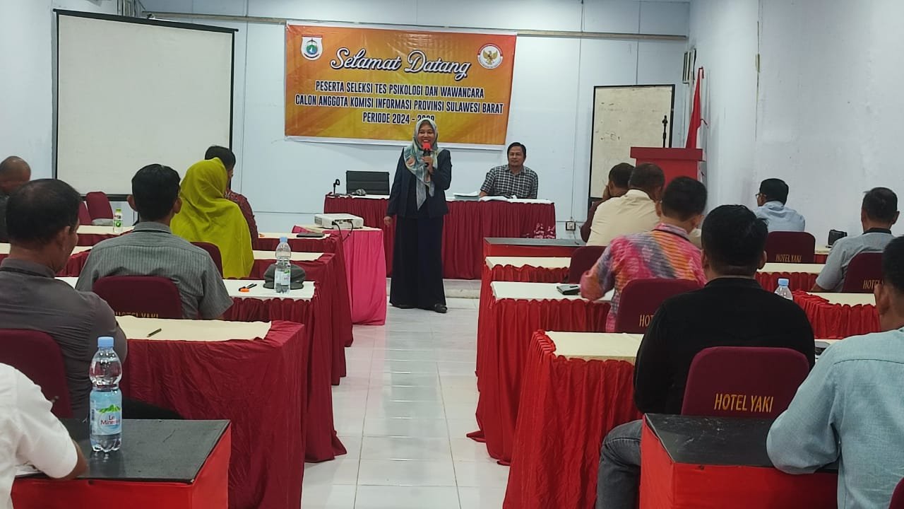 MATTANEWS.CO,SULBAR – Calon anggota Komisi Informasi Provinsi (KIP) Sulawesi Barat periode 2024-2028 mengikuti tes psikologi yang dilaksanakan tim seleksi di Hotel Yaki Mamuju, Sabtu (7/12/2024).