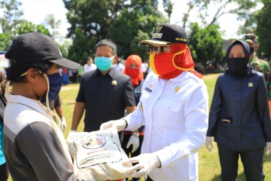 Total bantuan sekitar 27 ribu, telah disebarkan di 15 kecamatan yang ada di Kabupaten Tulang Bawang. Penyerahan bantuan sendiri diberikan secara simbolis oleh Bupati Tulang Bawang, Winarti, ke perwakilan masyarakat, kepala kampung, camat, termasuk bantuan khusus untuk tenaga kesehatan di masing-masing kecamatan setempat.