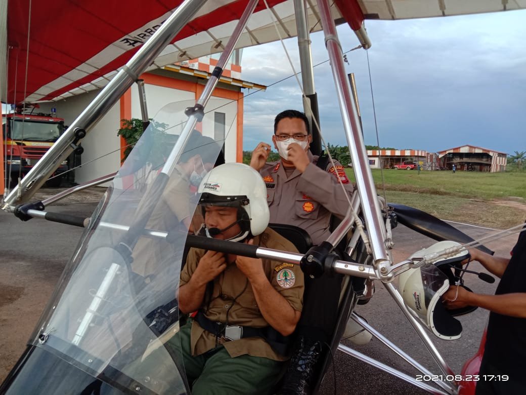Kapolres Kapuas Hulu, AKBP Wedy Mahadi bersama Kepala Balai Besar Taman Nasional Betung Kerihun – Danau Sentarum (TNBK-DS) memantau langsung dari udara menggunakan pesawat ultralight milik TNBK-DS ke daerah yang terdampak banjir rob yang umumnya di bantaran Sungai Kapuas.
