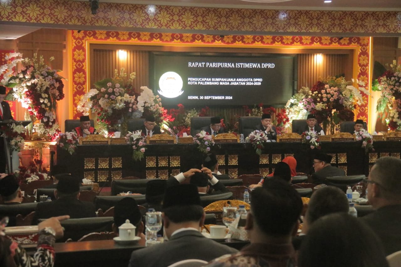 Sebanyak 50 anggota DPRD Kota Palembang itu melakukan pengucapan sumpah janji dalam Sidang Rapat Paripurna Istimewa DPRD Kota Palembang pada Senin (30/9/2024).