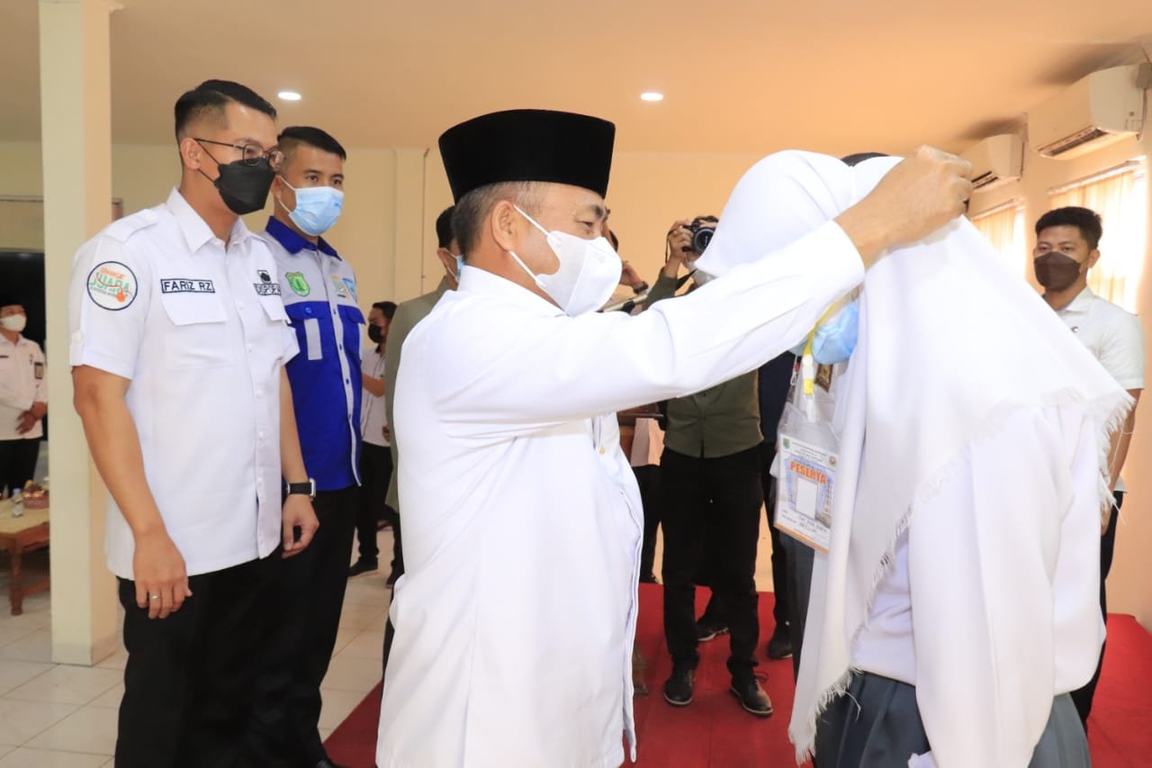 Bupati Muba Dr H Dodi Reza Alex Noerdin diwakili Sekretaris Daerah Kabupaten Muba Drs H Apriyadi MSi membuka kegiatan LKS tingkat Kabupaten Muba, ditandai dengan pemasangan tanda peserta secara simbolis.