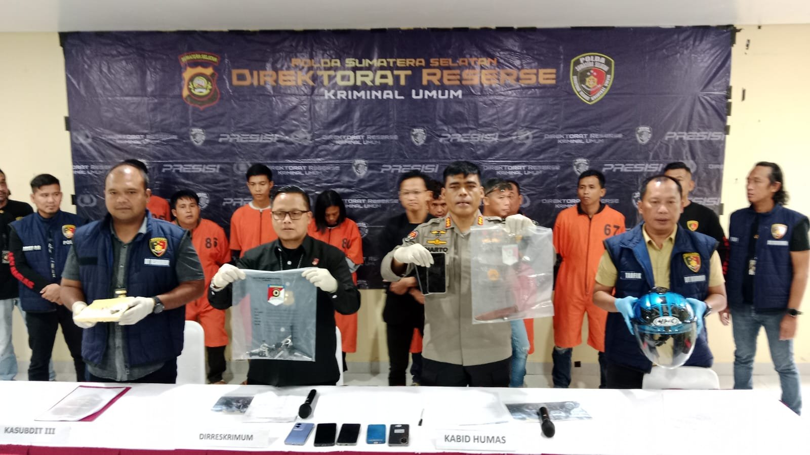 “Kita tangkap kawanan pelaku ini setelah menindaklanjuti beberapa laporan korban domisili Empat Lawang dan Muara Enim. Saat itu, mereka beraksi di Jalan Kelawas Desa Lingga, depan Bank Sumsel Babel, Kecamatan Lawang Kidul, Muara Enim pada Kamis (18/1/2024). Kejadian itu sempat viral dimedsos,” papar Dirreskrimum Polda Sumsel, Kombes Pol M Anwar Reksowidjojo didampingi Kabid Humas, Kombes Pol Sunarto dan Kanit Unit 4 Jantaras, AKP Taufik Ismail, saat press release.