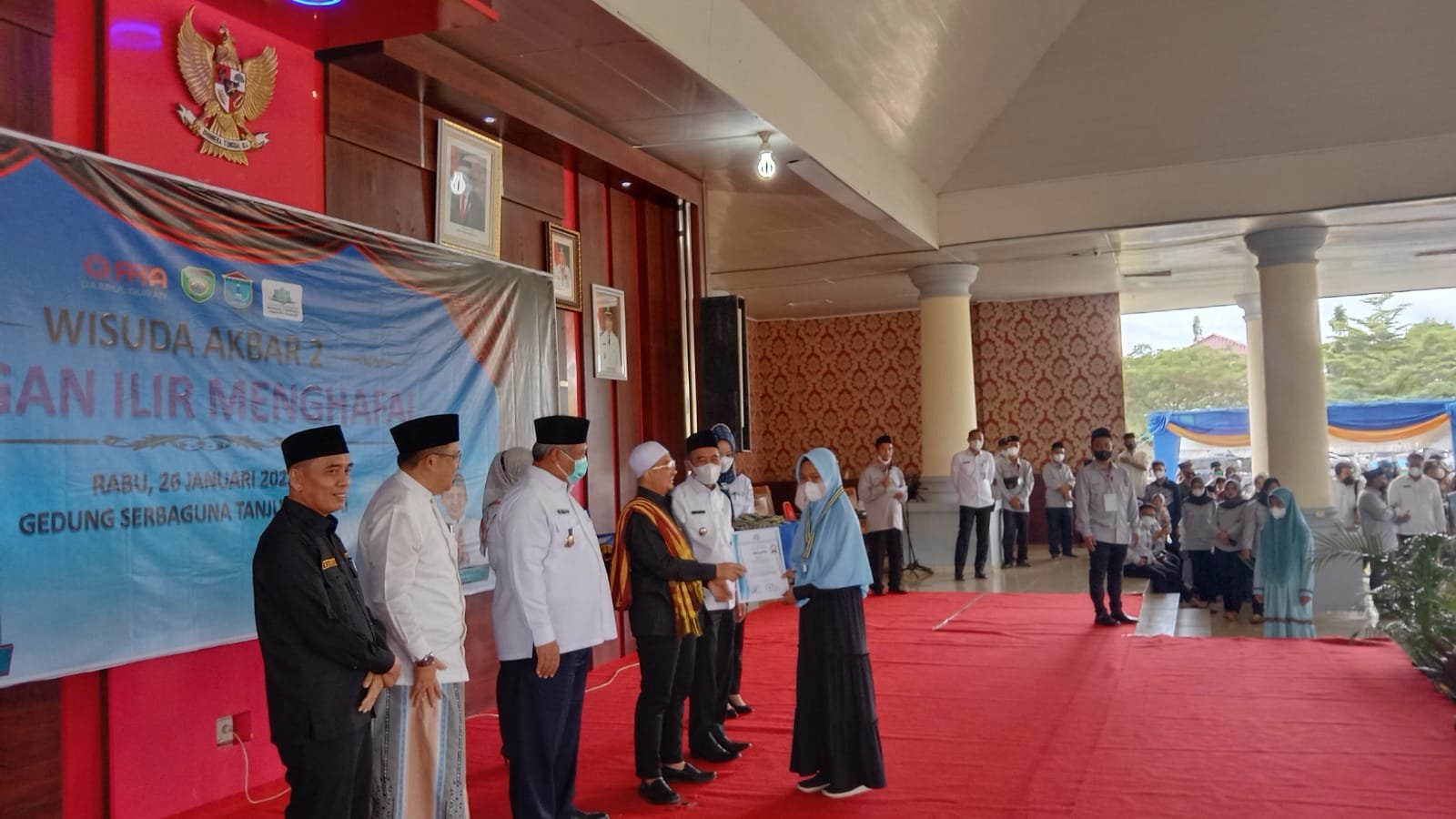MATTANEWS.CO, OGAN ILIR – 715 penghafal Al Quran mengikuti wisuda akbar yang digelar pengurus Rumah Tahfidz Kabupaten Ogan Ilir (OI), Sumatera Selatan, di Gedung Serbaguna Caram Seguguk Komplek Perkantoran Terpadu (KPT) Tanjung Senai, Indralaya, Rabu (26/1/2022).