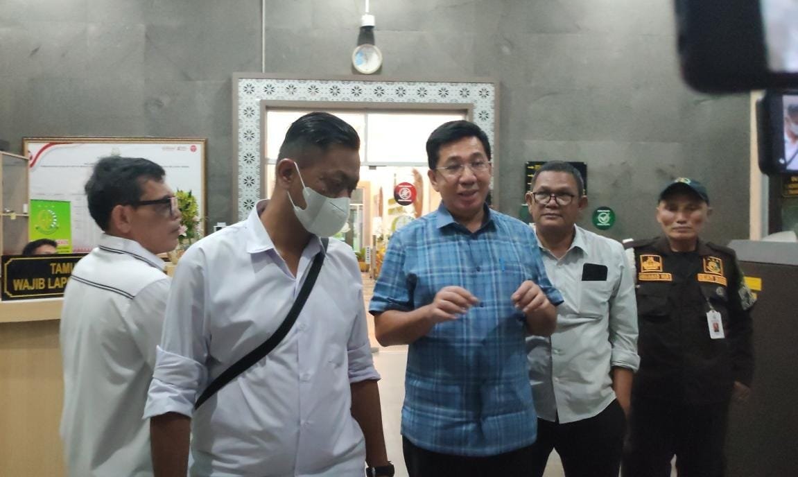 Basyaruddin tampak turun dari Gedung Kejati Sumsel, tepat pukul 18.00 Wib, usai jalani serangkaian pemeriksaan terkait mangkraknya pembangunan pasar Cinde, yang hingga saat ini terbengkalai.