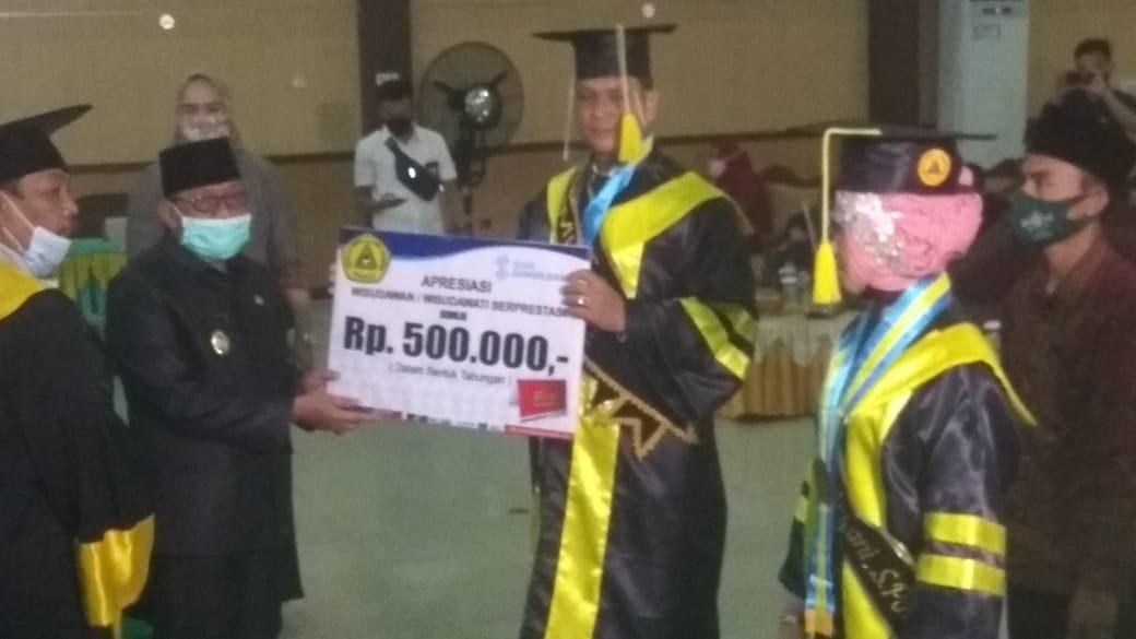 “Ada 81 orang yang kita wisuda hari ini dari 82 orang tersebut, 1 Orang peserta wisudawan Bapak Amir Syarifudin meninggal dunia dua hari yang lalu di Palembang,” ujar Syukri dihadapan awak media.