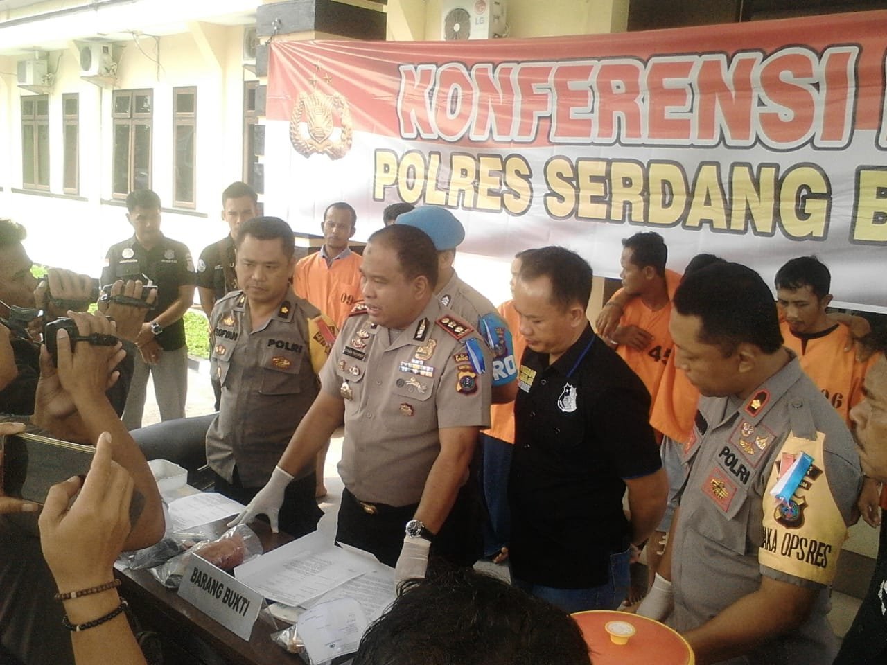 “Penangkapan kesembilan tersangka ini terhitung mulai 1 hingga 7 September. Terdiri dari 6 laporan, 4 LP Satresnarkoba, 1 LP Polsek Firdaus, 1 LP Polsek Tanjung Beringin,” kata Kapolres Sergai AKBP H Juliarman Pasaribu di hadapan wartawan di sela-sela pemaparan kasus di Mapolres Sergai, Rabu (11/09/2019).