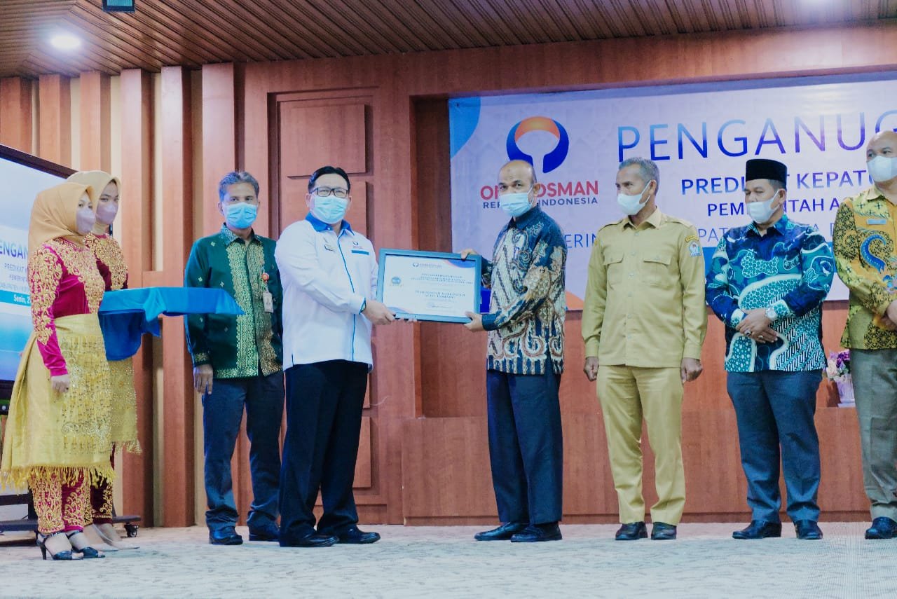 Anugerah tersebut langsung diserahkan oleh Komisioner Ombudsman RI Dadan Suparjo Suharmawijaya, di Gedung Serba Guna Setda Aceh ini turut disaksikan Gubernur Aceh, Nova Iriansyah.