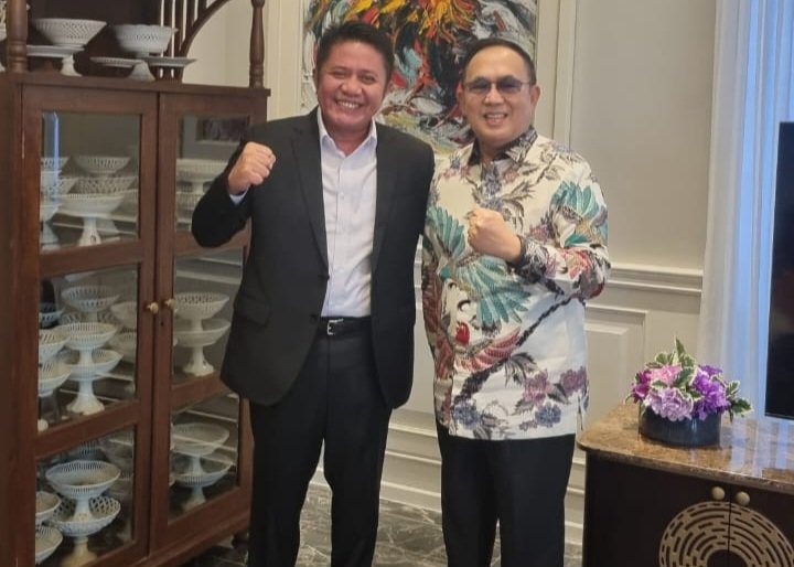 MATTANEWS.CO, PALEMBANG – Anggota DPRI dari Fraksi Gerindra yang juga mantan Wali Kota Palembang, H. Eddy Santana Putra (ESP) Bertemu Calon Gubernur Sumsel, H. Herman Deru (HD) di kediamannya Jalan Taman Kenten Palembang, Sabtu (13/4/2024). Pertemuan dua tokoh politik tersebut sontak mendapat perhatian publik karena terkait dengan Pilkada Gubernur Sumsel yang akan digelar November 2024 mendatang.