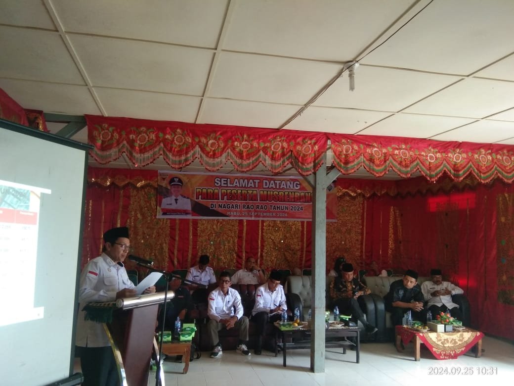 MATTANEWS.CO, TANAH DATAR – Ade Raunas.SE, Wali Nagari Rao -rao, Kecamatan Sungai Tarab, buka secara resmi Musyawarah Rencana Pembangunan(Muerenbang) Nagari, yang di gelar di SDN.01 Rao-rao, Rabu(25/9/2024).