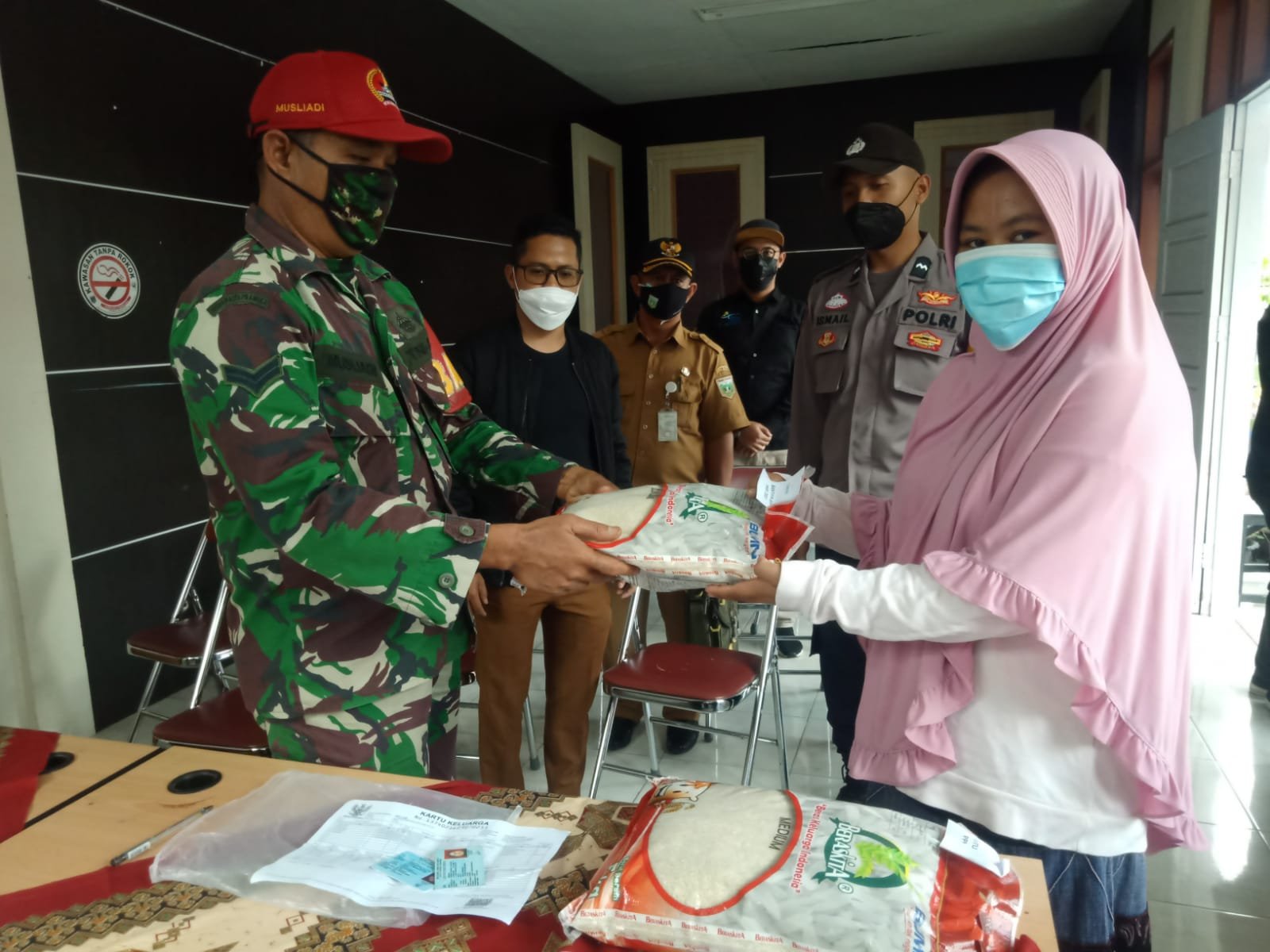 Anggota Koramil 01/Tanah Datar Musliadi mengatakan, dia membantu untuk menjaga keamanan dan ketertiban masyarakat. Tentunya agar aktifitas penyaluran bantuan tidak melanggar Prokes.