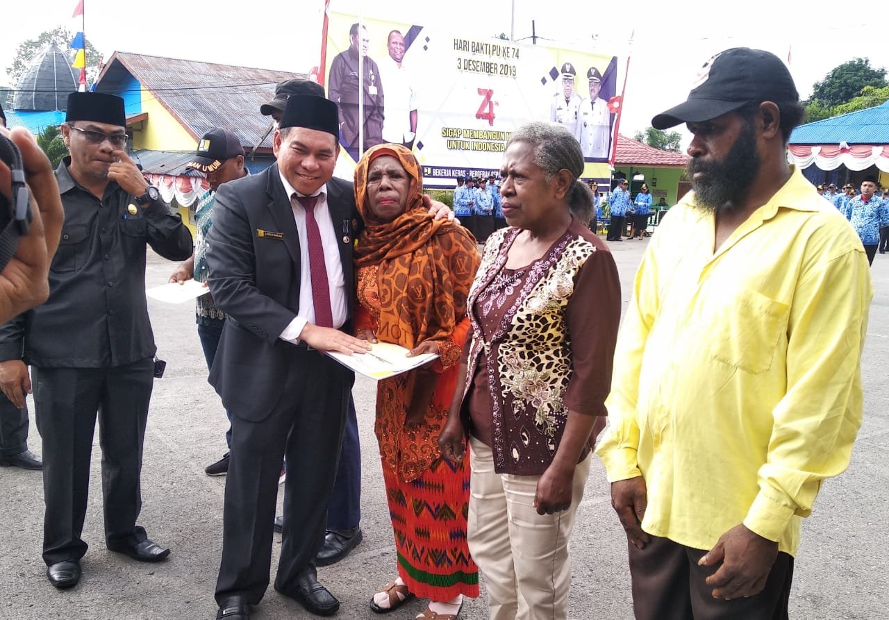 Kadis PUPR Kabupaten Fakfak memberikan penghargaan ke petugas kebersihan (Mokhsen / Mattanews.co)