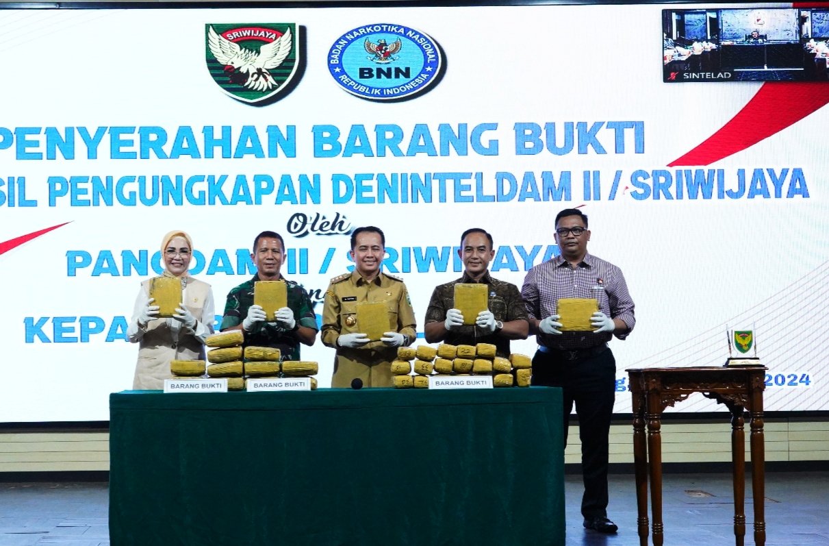 MATTANEWS.CO, PALEMBANG – Dalam memberantas narkotika di Palembang, Sumsel ini bukan hanya tertumpu kepada petugas kepolisian saja, tapi juga TNI, bahkan kita bersama. Kali ini pengungkapan berhasil digagalkan jajaran Ajendam II/ Sriwijaya. Dengan sangat hati-hati, tim ini sukses menyita narkoba jenis ganja sebanyak tiga paket atau seberat 26,164 kilogram, saat berada di Jalan Soekarno Hatta, Sukarami, Palembang, Sunsel, Selasa (13/2/2024).