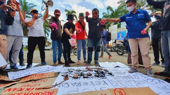 Atas peristiwa tersebut, puluhan jurnalis bersama mahasiswa di Kabupaten Mamuju menggelar aksi solidaritas, Rabu (10/11/2021).