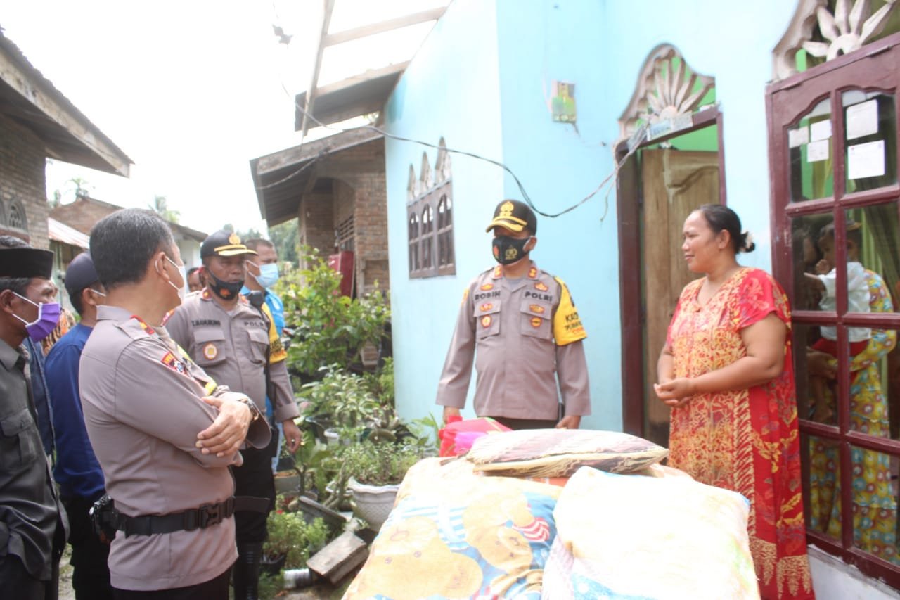 SERGAI, Mattanews.co – Kapolres Serdang Bedagai AKBP Robin Simatupang bersama Pejabat Utama (PJU) Polres Sergai melaksanakan Bakti Sosial (Baksos) kepada warga yang terkena musibah bencana angin puting beliung di Dusun XV, Kp. Jati, Desa Sei Bamban, Kecamatan Sei Bamban, Kabupaten Serdang Bedagai, Minggu (29/11/2020