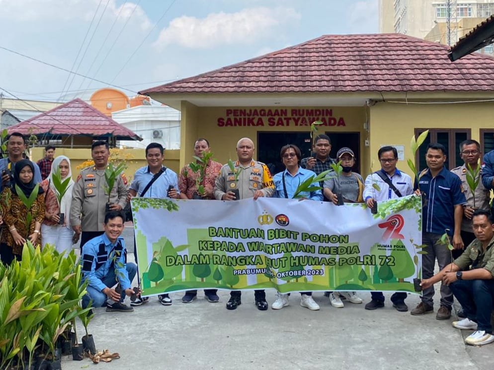 MATTANEWS.CO, PRABUMULIH – Seribu bibit pohon, dibagi kepada sejumlah wartawan Prabumulih tergabung dalam organisasi PWI oleh Polres Prabumulih.