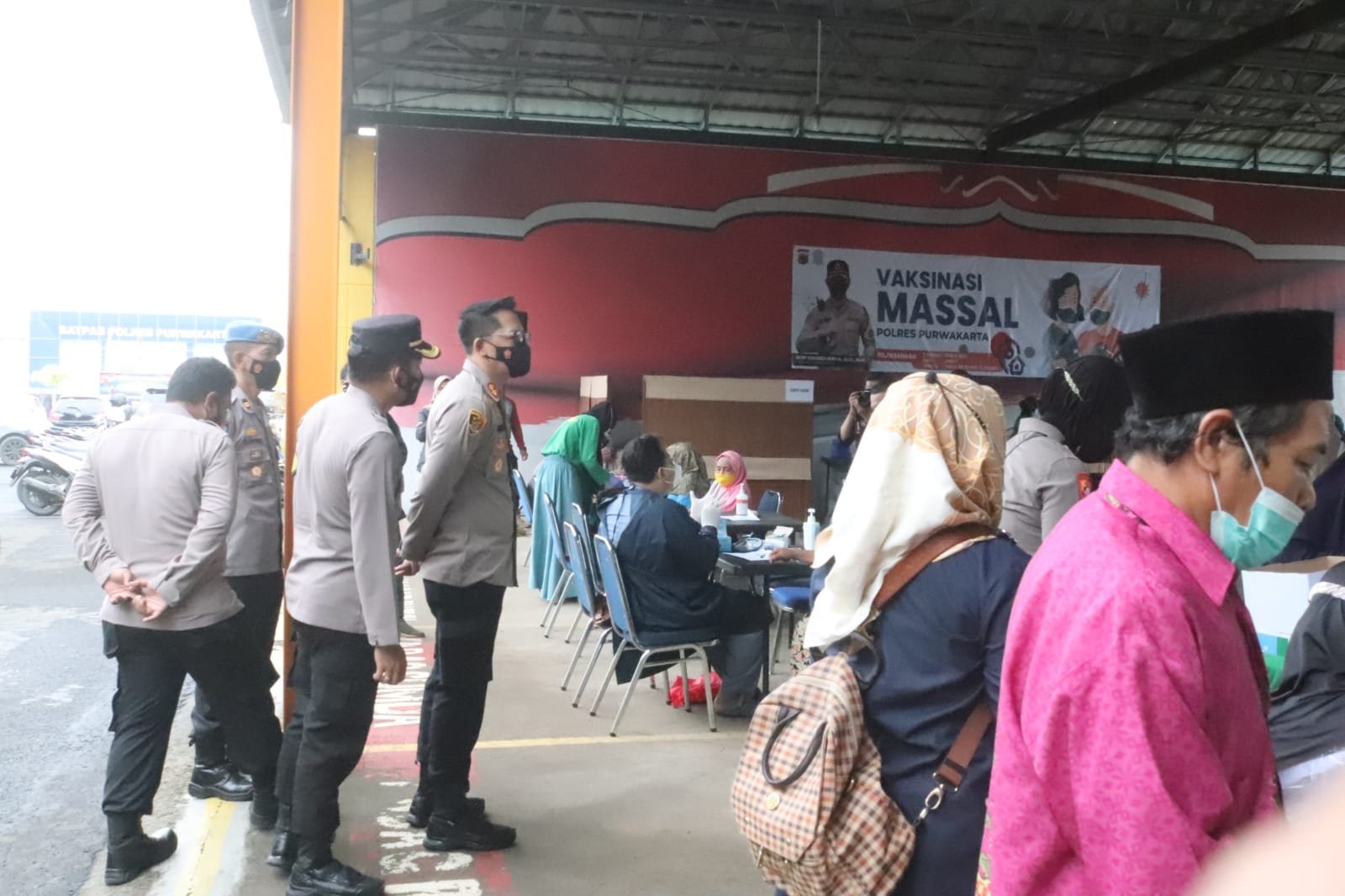 Vaksin massal kali ini digelar di dua titik yakni di Mapolres Purwakarta dan Satpolair Polres Purwakarta di Darmaga Jatiluhur.