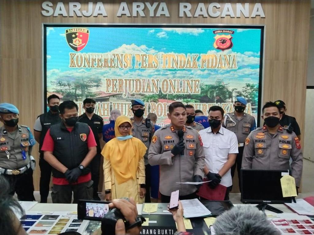 Polres Purwakarta melalui Satuan Reserse Kriminal berhasil meringkus empat pelaku tersangka judi online jenis slot, satu diantaranya seorang perempuan.