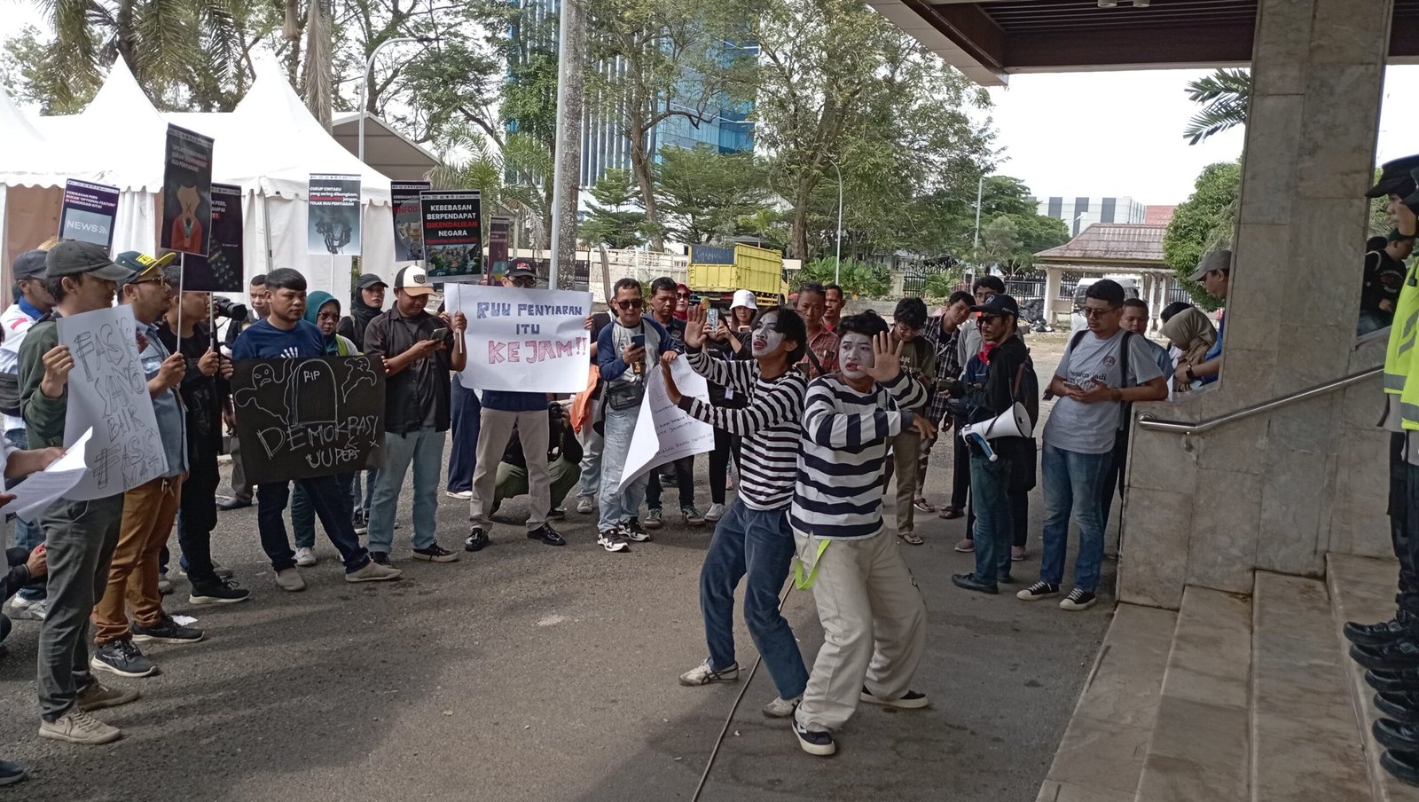 Lanjutnya, rekan jurnalis meminta dihentikannya revisi RUU Penyiaran yang mengundang dilema dan dapat menguntungkan sebagian orang saja.