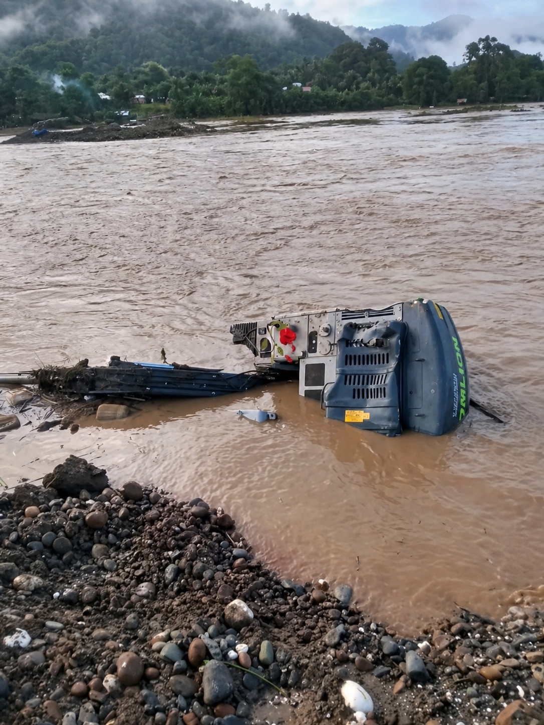 “Kami melihat banyak alat berat dari berbagai merek, tapi yang dominan Zoomlion yang terseret banjir. Ada juga Hitachi dan LiuGong,” katanya.