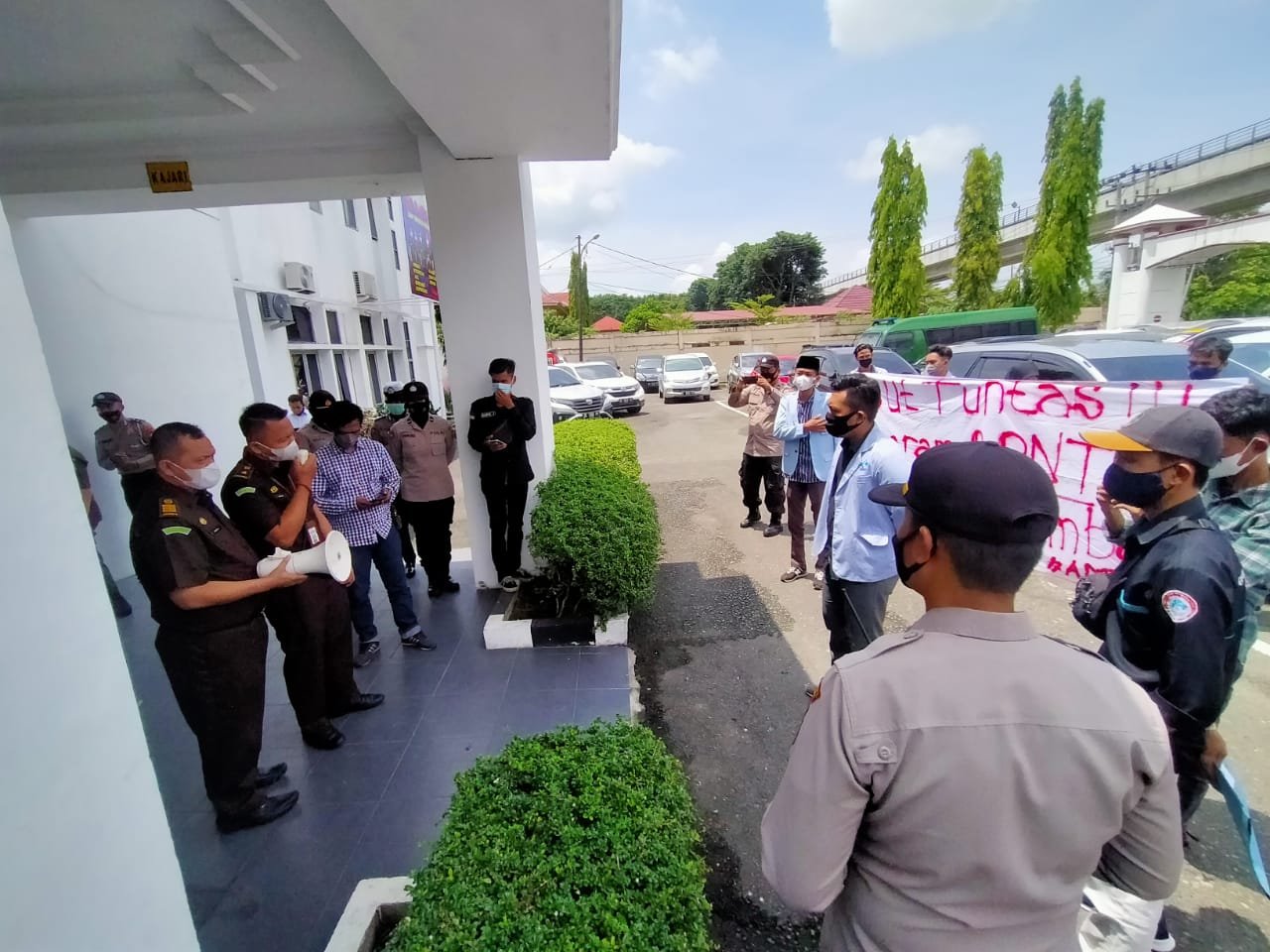 Koordinator aksi Reja Anggara meminta Kejaksaan Negeri Palembang untuk segera memeriksa Dinas Sosial (Dinsos) Kota Palembang, TKSK (Tenaga Kesejahteraan Sosial Kecamatan), dan E – Warong yang menjadi pelaksana mekanisme penyaluran BPNT di Kota Palembang