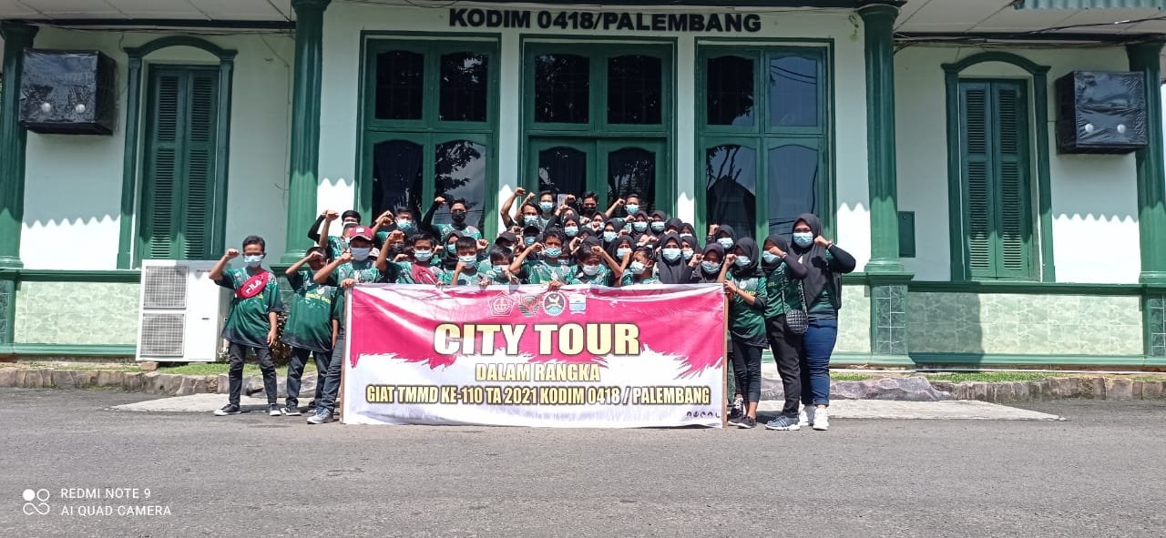 Usai berkeliling kantor Kodim 0418 Palembang, tak lupa anggota Satgas TMMD mengajak anak – anak untuk berfoto bersama sebagai kenang – kenangan saat City Tour.
