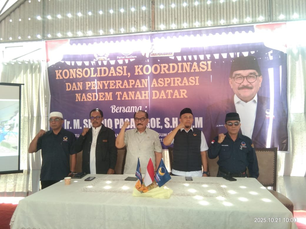 MATTANEWS.CO, TANAH DATAR – Ir.M.Shadiq Pasadigoe,S.H.,M.M, Anggota Dewan Perwakilan Rakyat Repoblik Indonesia(DPR-RI) gelar konsolidasi dan penyerapan Aspirasi, dari Kader dan Pengurus Partai Nasdem, Tanah Datar, yang diadakan di Parak Juar, Batusangkar, Selasa(21/10/2025).