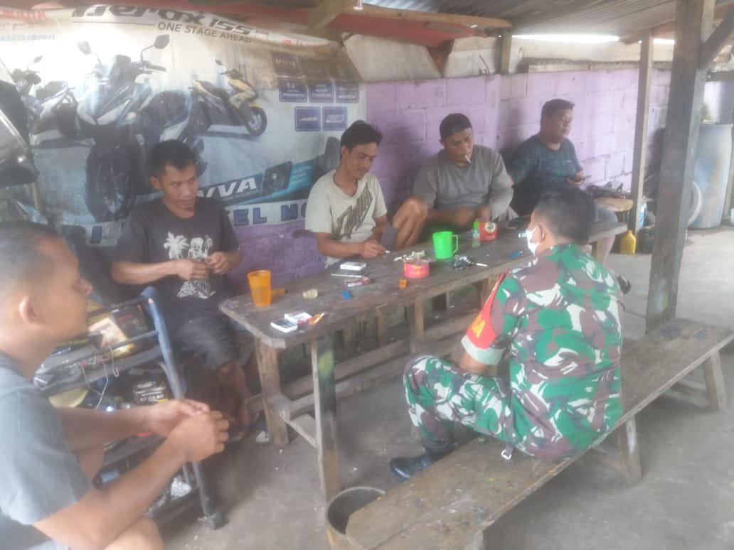 Pada Kamis (9/4/2020) siang, Sertu Harun menyambangi beberapa orang warga yang tengah berkumpul, di kawasan Simpang Purba, Desa Sekar Biru, Kecamatan Parit Tiga.