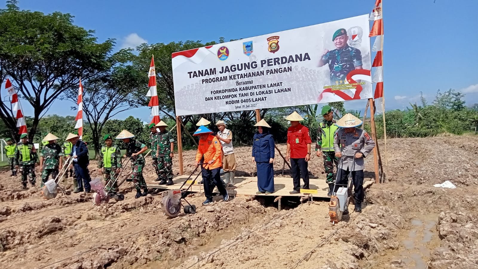 Dandim 0405 Lahat Letkol Tony Oki Priyono,SIP menyanpaikan,Bahwa penanaman bibit Jagung merupakan program ketahanan TNI untuk membantu pemerintah khususnya Pemerintah kabupaten Lahat untuk mensejahterakan masyarakat.
