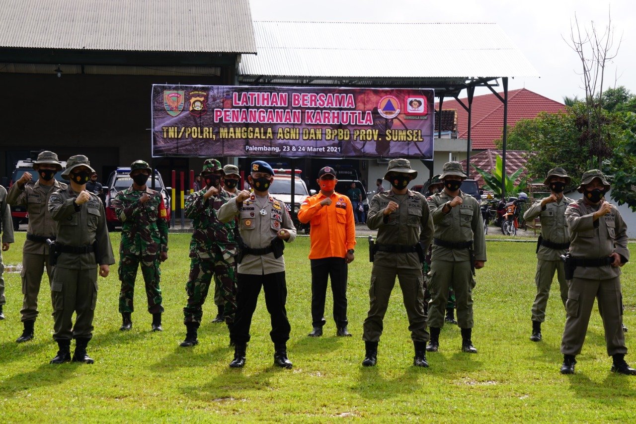 Latihan bersama penanganan Karhutla yang digagas Dansat Brimob Polda Sumsel, Kombes Pol Yudo Nugroho Sugianto ini, dilaksanakan selama dua hari dengan melibatkan gabungan personel TNI Polri, Manggala Agni dan BPBD Provinsi Sumsel.