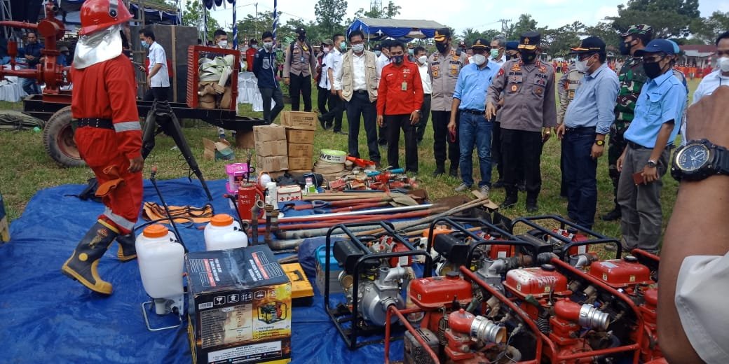 Kapolda Sumsel mengapresiasi seluruh peserta apel atas kehadirannya dan kesiapannya, dalam rangka antisipasi karhutla di Kabupaten OKI.