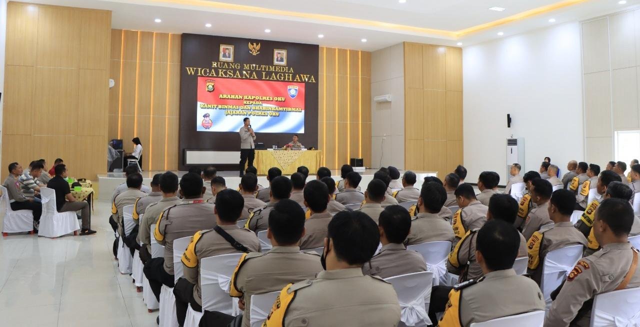 MATTANEWS.CO, BATURAJA – Kapolres Ogan Komering Ulu (OKU), AKBP Danu Agus Purnomo SIK, memberikan pengarahan kepada Kanit Binmas dan seluruh Bhabin Kamtibmas jajaran Polres OKU.