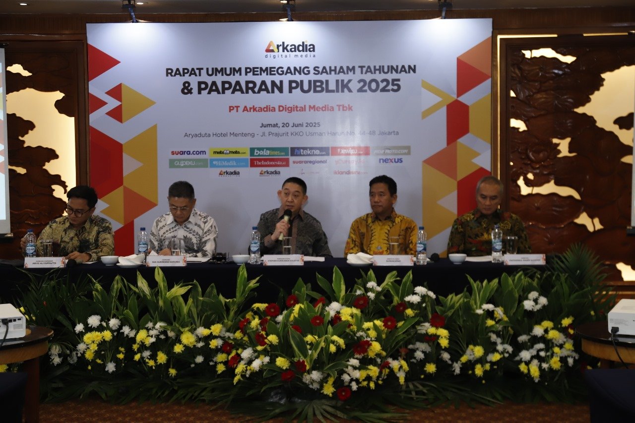 MATTANEWS.CO, JAKARTA – PT Arkadia Digital Media Tbk (DIGI) melaporkan kinerja keuangan positif sepanjang tahun 2024. Tercatat pendapatan hingga laba bersih Perseroan naik signifikan dibandingkan tahun sebelumnya. Direktur Utama PT Arkadia Digital Media Tbk, Suwarjono menyampaikan ini dalam Rapat Umum Pemegang Saham Tahunan (RUPST) yang digelar di Hotel Aryaduta, Jakarta, pada Jumat (20/6/2025).