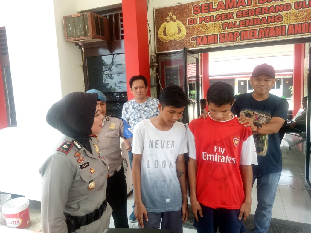 Kapolsek SU II Palembang, Kompol Yenny Diarty, didampingi Kanit Reskrim Ipda Andrian Novalesi, sedang memproses kedua tersangka.