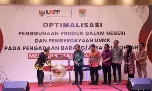 MATTANEWS.CO,LUBUK LINGGAU-Penjabat Asisten I Bidang Pemerintah dan Kesra Kota Lubuk Linggau, Erwin Armedi menghadiri kegiatan optimalisasi penggunaan produk dalam Negeri dan pemberdayaan Usaha Mikro, Kecil dan Koperasi (UMKK) pada pengadaan barang/jasa Pemerintah melalui Katalog Elektronik di Ballroom Hotel Grand Zuri.