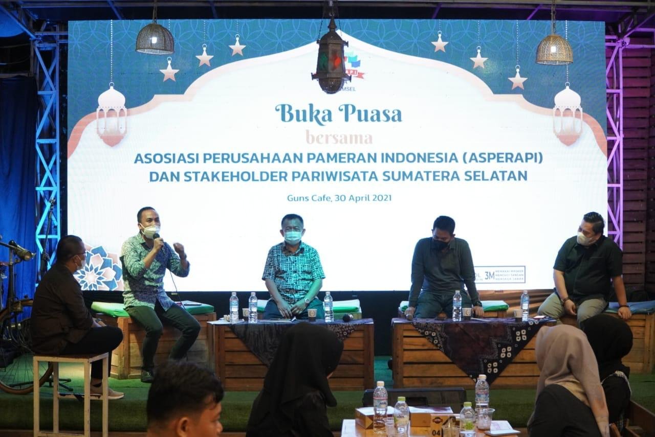 MATTANEWS.CO,PALEMBANG – Asosiasi Perusahaan Pameran Indonesia (ASPERAPI) Sumsel dan Stakeholder Pariwisata Sumsel, menggelar buka puasa bareng dan bersilaturahmi di Guns Cafe, kawasan Kambang Iwak Palembang, Jumat (30/4/2021).