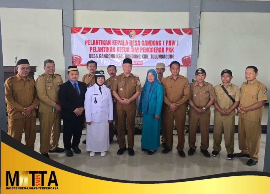 MATTANEWS.CO,TULUNGAGUNG — Pemerintah Kabupaten Tulungagung Provinsi Jawa Timur resmi melantik Atik Susanti sebagai Kepala Desa Antar Waktu (PAW) Desa Gandong, Kecamatan Bandung, pada Selasa (31/3/2026). Dalam pelantikan itu, Bupati Tulungagung H. Gatut Sunu Wibowo, S.E., M.E. menegaskan bahwa jabatan kepala desa bukan sekadar posisi administratif, melainkan amanah besar yang harus dijawab dengan kerja nyata, integritas, dan keberpihakan kepada rakyat.