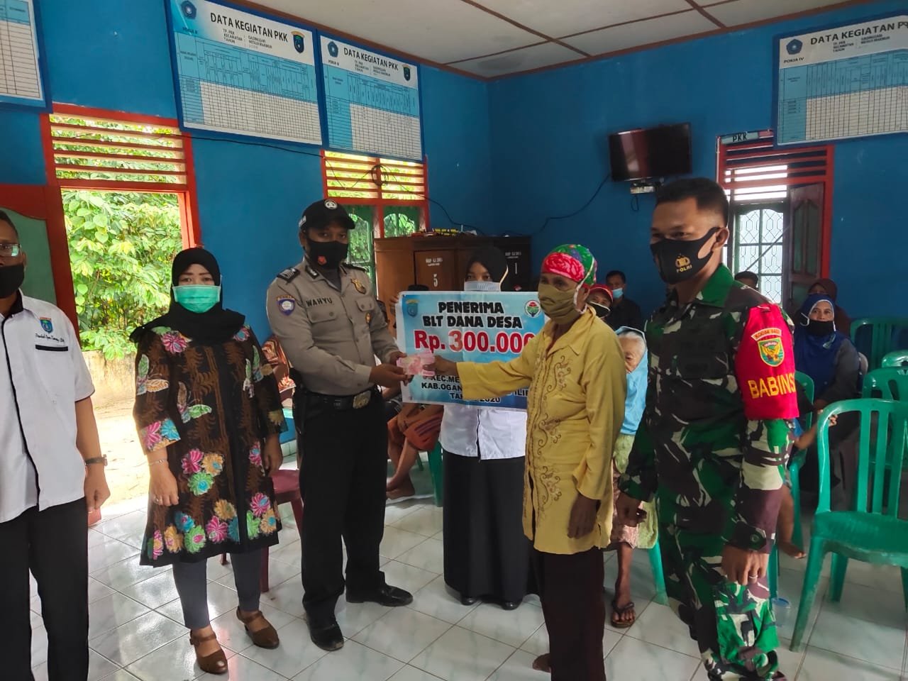 Dalam penyaluran BLT DD, kami didampingi dari pihak Koramil dan Polsek demi kelancaran dan bantuan yang di salurkan ini menggunakan Dana Desa, sesuai dengan instruksikan Kemendes yaitu untuk mengalihkan sebagian Dana Desa guna penanganan Covid-19, bentuk bantuannya langsung tunai, terang Kades.