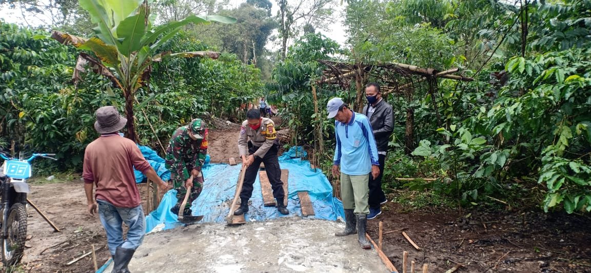 LAMPUNG BARAT, Mattanews.co – Babinsa Koramil 422-04/Balik Bukit Koptu Aprizal bersama masyarakat, melaksanakan Karya Bhakti pengecoran jalan.