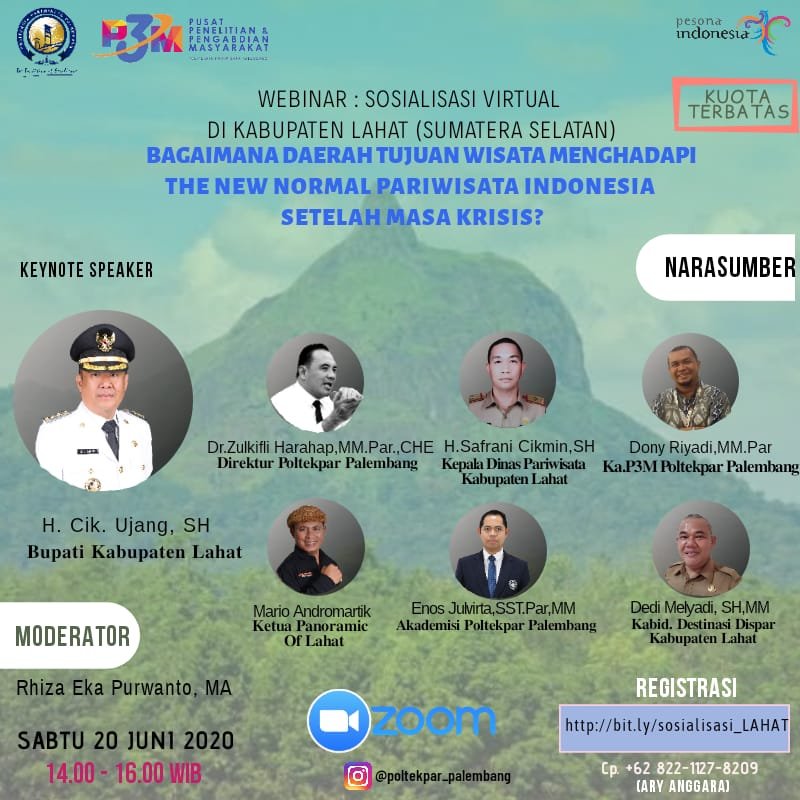 Webinar atau sosialisasi VIRTUAL di Kab.Lahat -SUMSEL mengambil judul Bagaimana Daerah Tujuan Wisata Menghadapi The New Normal Pariwisata Indonesia Setelah Masa Krisis
