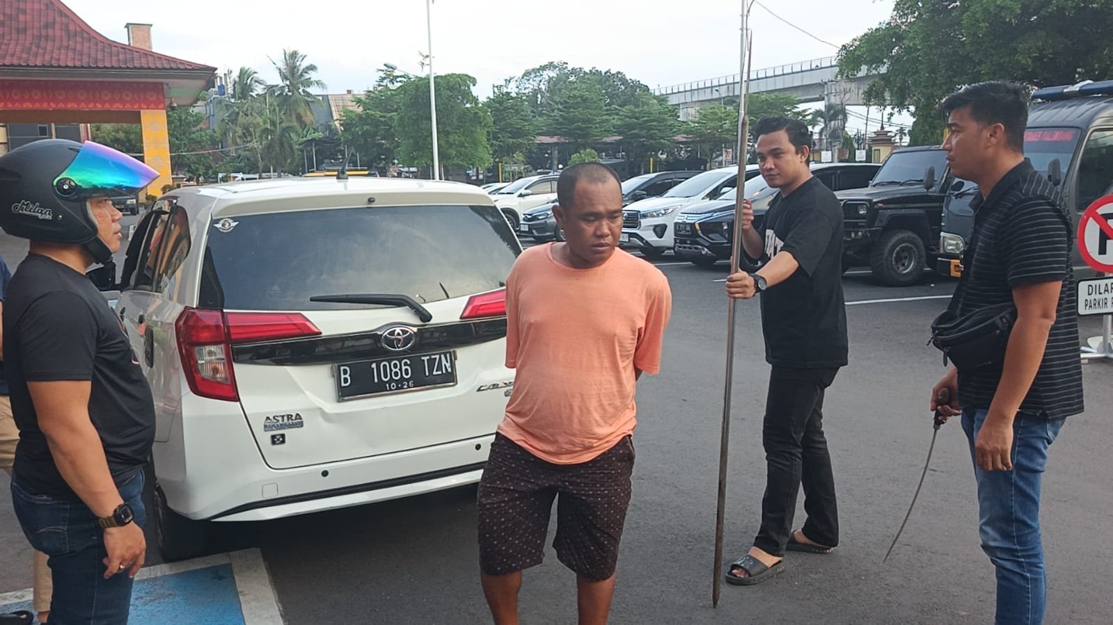 “Benar, tersangka sudah kita amankan dari rumahnya, berikut barang bukti tombak dan senjata tajam jenis celurit,” papar Kasat Reskrim Polrestabes Palembang, AKBP Andrie Setiawan, didampingi Kanit Ranmor, Iptu Jhoni Palapa.