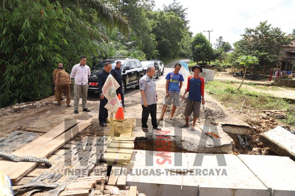 MATTANEWS.CO, MUBA – Kondisi drainase jebol yang membuat jalan hampir putus di Dusun 5 Desa Tanah Abang Kecamatan Batanghari Leko langsung ditinjau Pj Bupati Apriyadi Mahmud, Senin (13/2/2023).