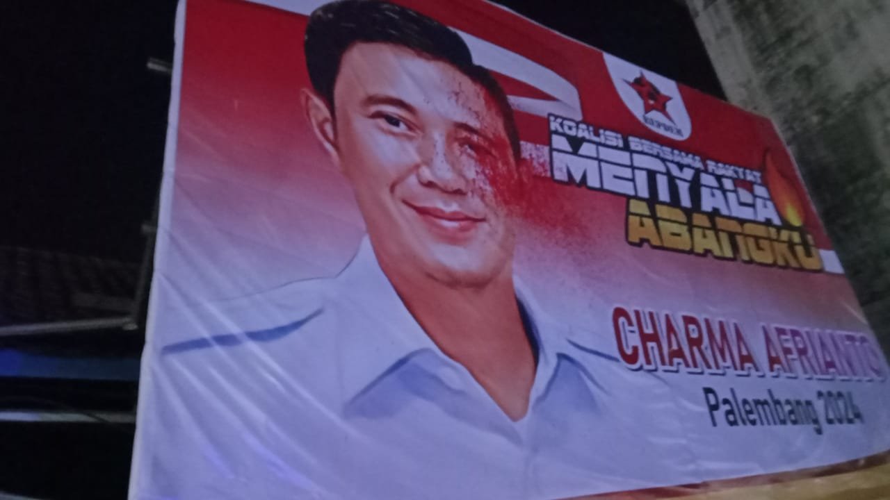 MATTANEWS.CO, PALEMBANG – Charma Afriyanto mengomentari insiden perusakan baliho miliknya oleh oknum tidak dikenal. Baliho yang mempromosikan Charma sebagai bakal calon Wali Kota Palembang tersebut dirusak di beberapa lokasi, dengan cat merah yang sengaja disiramkan.