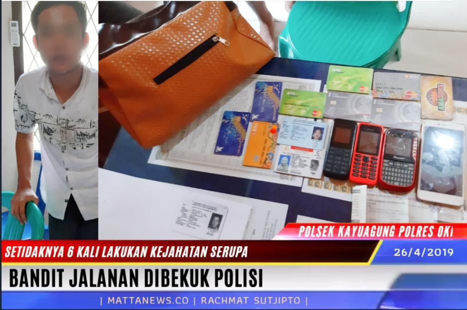 KAYUAGUNG, Mattanews.co – Polsek Kayuagung kembali membekuk pelaku penjambretan kambuhan Andreansyah Bin Saibin (21) warga Mangun Jaya Kayuagung Kabupaten Ogan Komering Ilir, Jumat (26/04/2019).