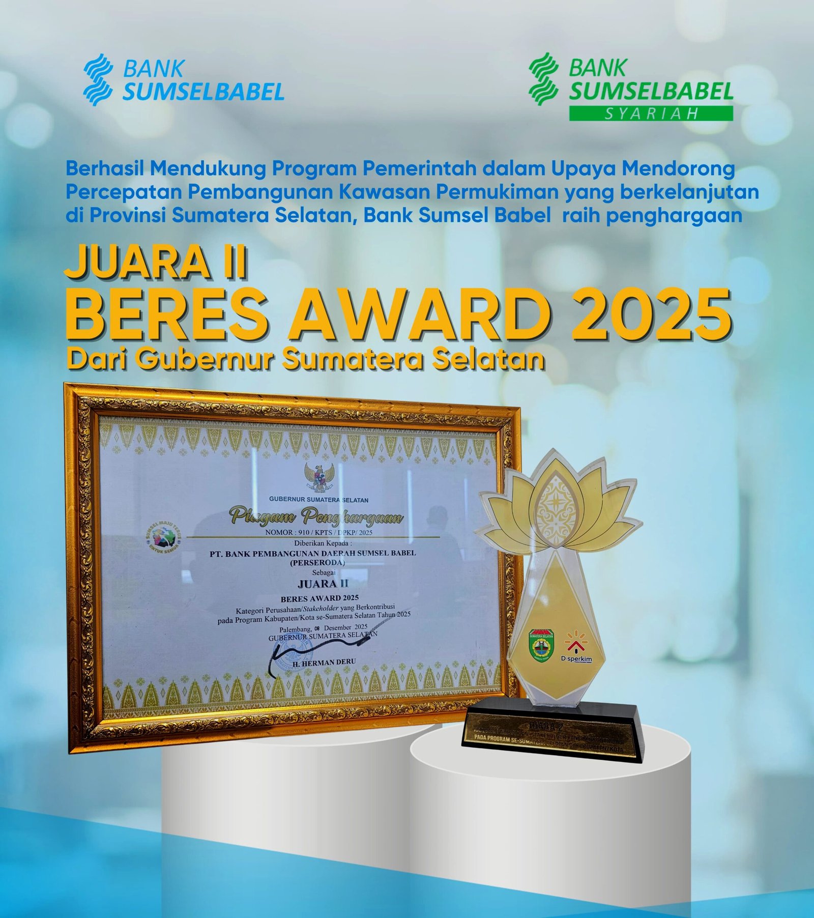 MATTANEWS.CO, PALEMBANG — Bank Sumsel Babel kembali menunjukkan perannya sebagai mitra strategis pemerintah daerah dengan meraih Juara II BERES Award 2025.