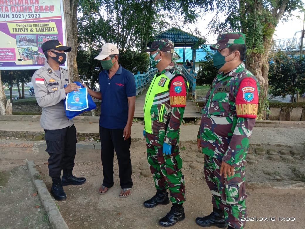 MATTANEWS.CO, KAPUAS HULU – Polres Kapuas Hulu bersama Kodim 1206/Psb menyalurkan bantuan paket sembako ke masyarakat yang terdampak Pemberlakuan Pembatasan Kegiatan Masyarakat (PPKM), Jumat (16/7/2021).