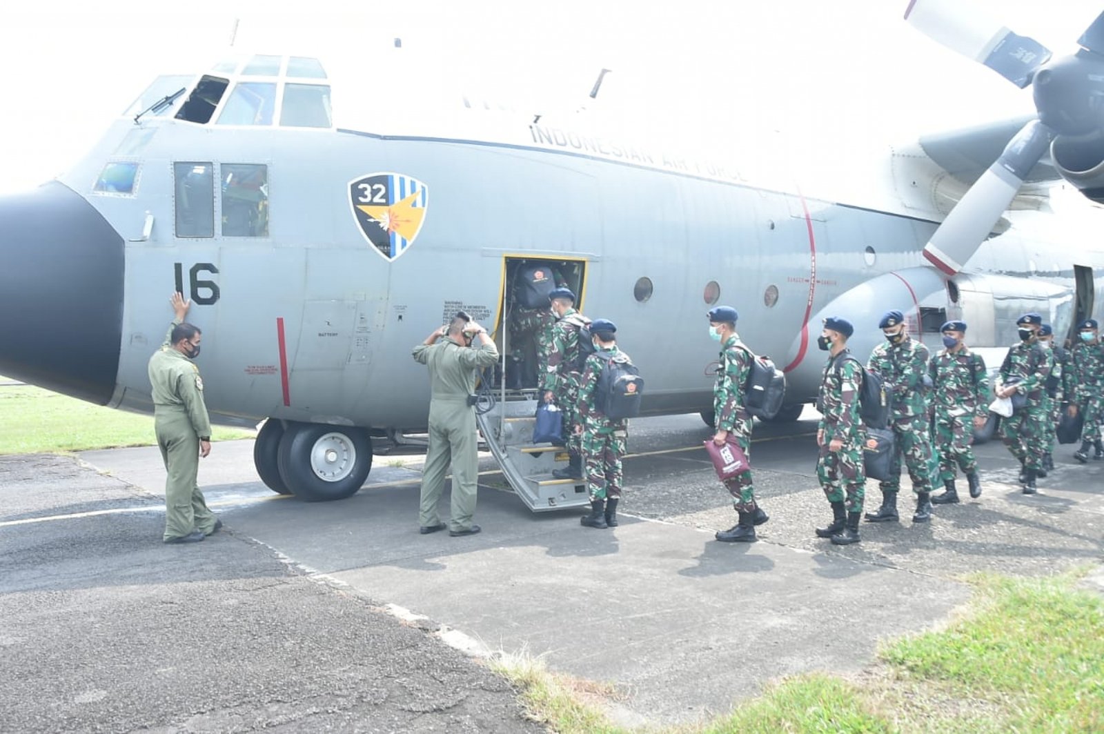 Dengan menggunakan Pesawat C-130 Hercules TNI AU dari Skadron 32 Malang dengan pilot Mayor Pnb Fahmi Aldila Firdaus serta Co-Pilot Lettu Pnb Matehus Banu L. dan Letda Pnb Satria Putradirga, para Tenaga Kesehatan dan Oxygen Concetratrator diberangkatkan melalui Lanud Halim Perdanakusuma, Jakarta Timur, Rabu (4/8/2021).